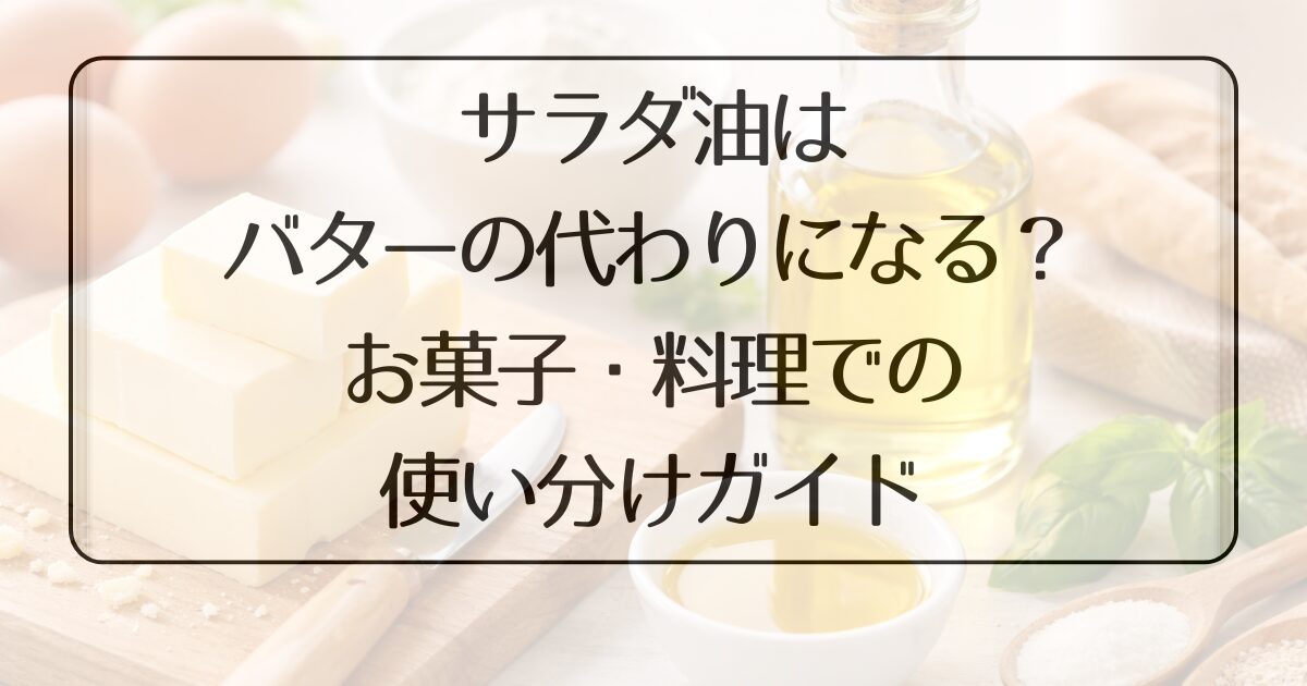 大切なのは、バターの役割が“主役”なのか、“つなぎ役”なのかを意識することです。主役であれば仕上がりの違いが出やすく、つなぎ役であればサラダ油でも自然に代用しやすくなります。