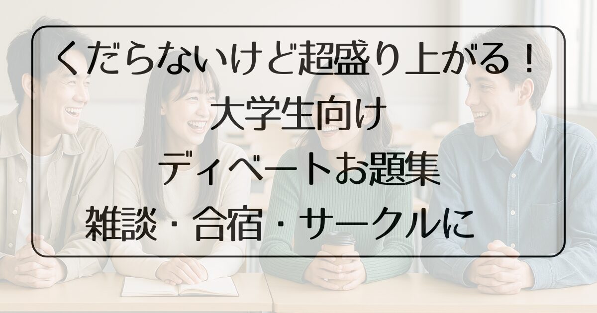大学生活が始まって間もない頃や、まだお互いをよく知らない友達との会話って、少し緊張しますよね。そんなときに役立つのが「くだらないけど面白いディベートお題」です。
