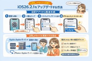 この記事では、URLが表示されない理由や、iOS26.2.1の位置づけをやさしく整理したうえで、「更新する」「少し待つ」どちらを選ぶかの目安を分かりやすくまとめています。