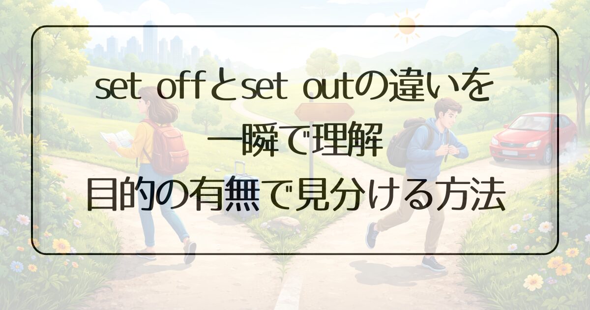 つまり、to の後ろが「動詞」なら set out、 「場所」なら set off が基本と覚えると整理しやすいですよ。