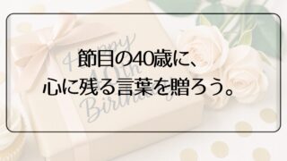 40歳の誕生日にぴったりなメッセージ文例を、おしゃれ系・感動系・ユーモア系などタイプ別に紹介。家族・友人・上司など相手別の使い分けも解説し、英語メッセージの訳付き例文も掲載。心に残る言葉がきっと見つかります。