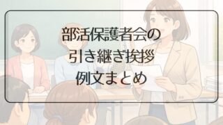 部活保護者会の引き継ぎ挨拶で悩んでいませんか?本記事では、退任・就任それぞれに使える例文をはじめ、会長・役員など立場別の挨拶例、対面・LINE・書面での伝え方、言い回しのポイントや不安を減らすコツまでやさしく解説します。原稿を見ながらでも大丈夫な理由も紹介しています。