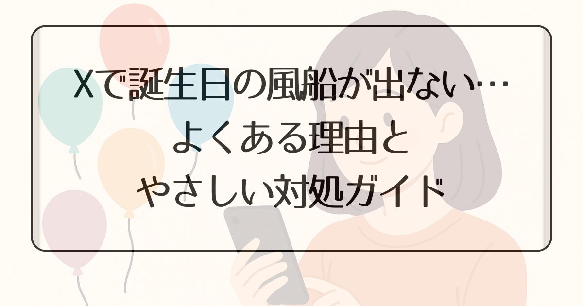 Xで風船が飛ばないときは、誕生日の公開範囲や端末側の設定など、ちょっとした部分が影響していることが多いんですよ。